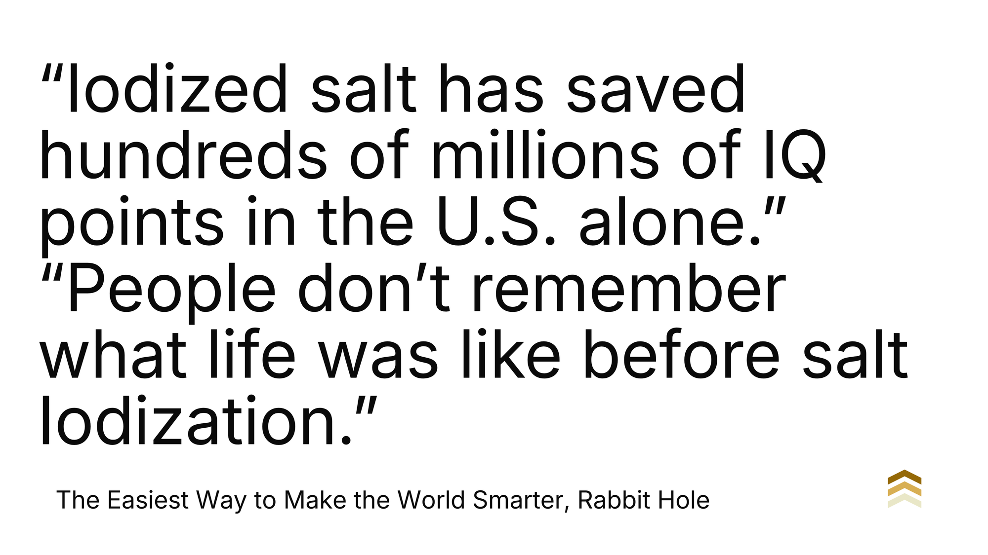 “Iodized salt has saved hundreds of millions of IQ points in the U.S. alone.” “People don’t remember what life was like before salt Iodization.”